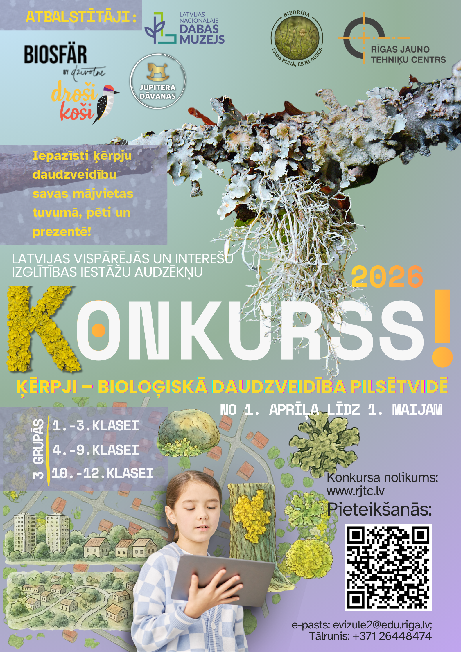 Rīgas Jauno tehniķu centrs aicina bērnus un jauniešus no visas Latvijas piedalīties atklātajā konkursā „Ķērpji – bioloģiskā daudzveidība pilsētvidē”!